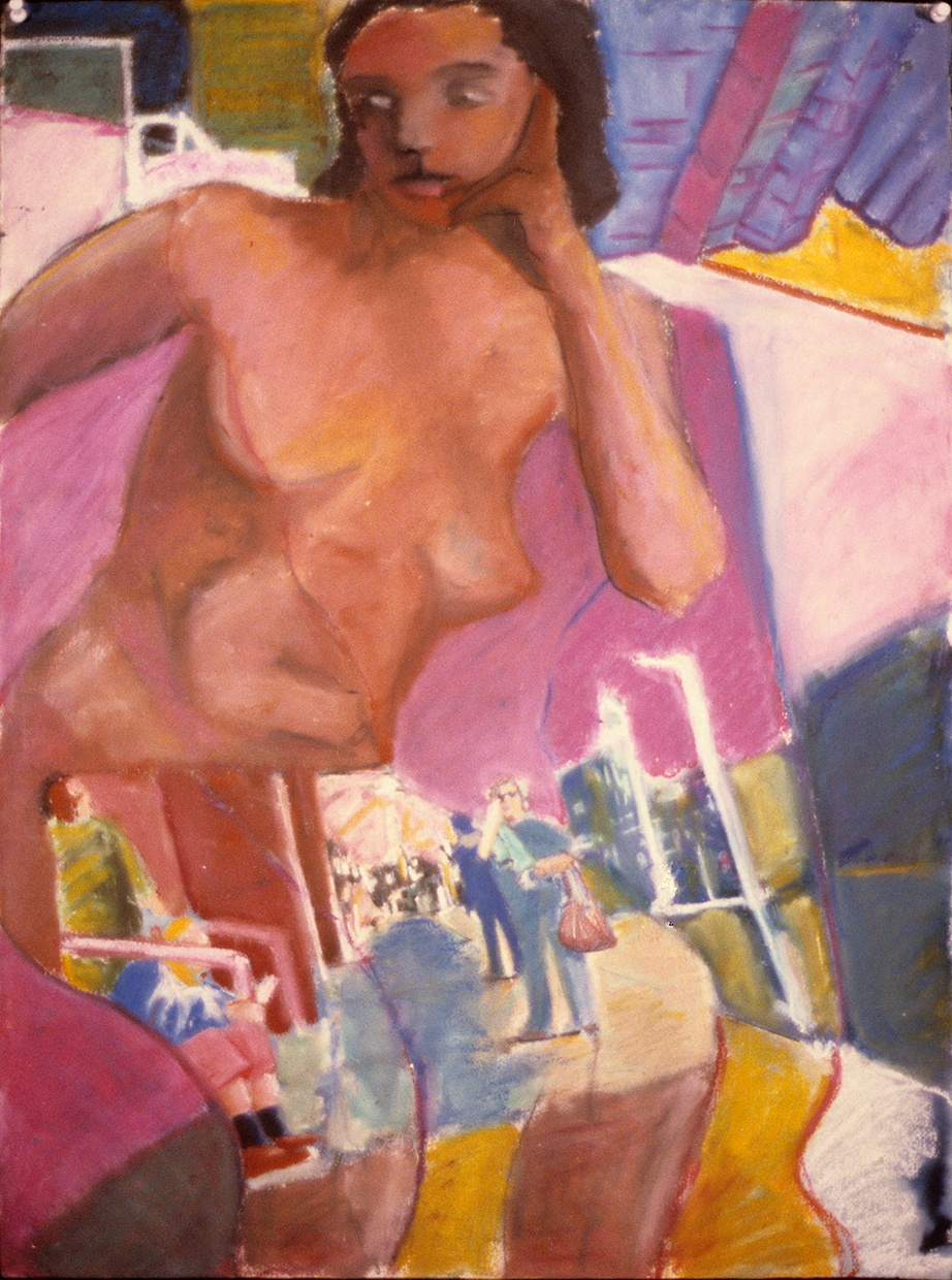 Projected Desires oil pastel /cyanotype on paper 1982 36 x 24 inches