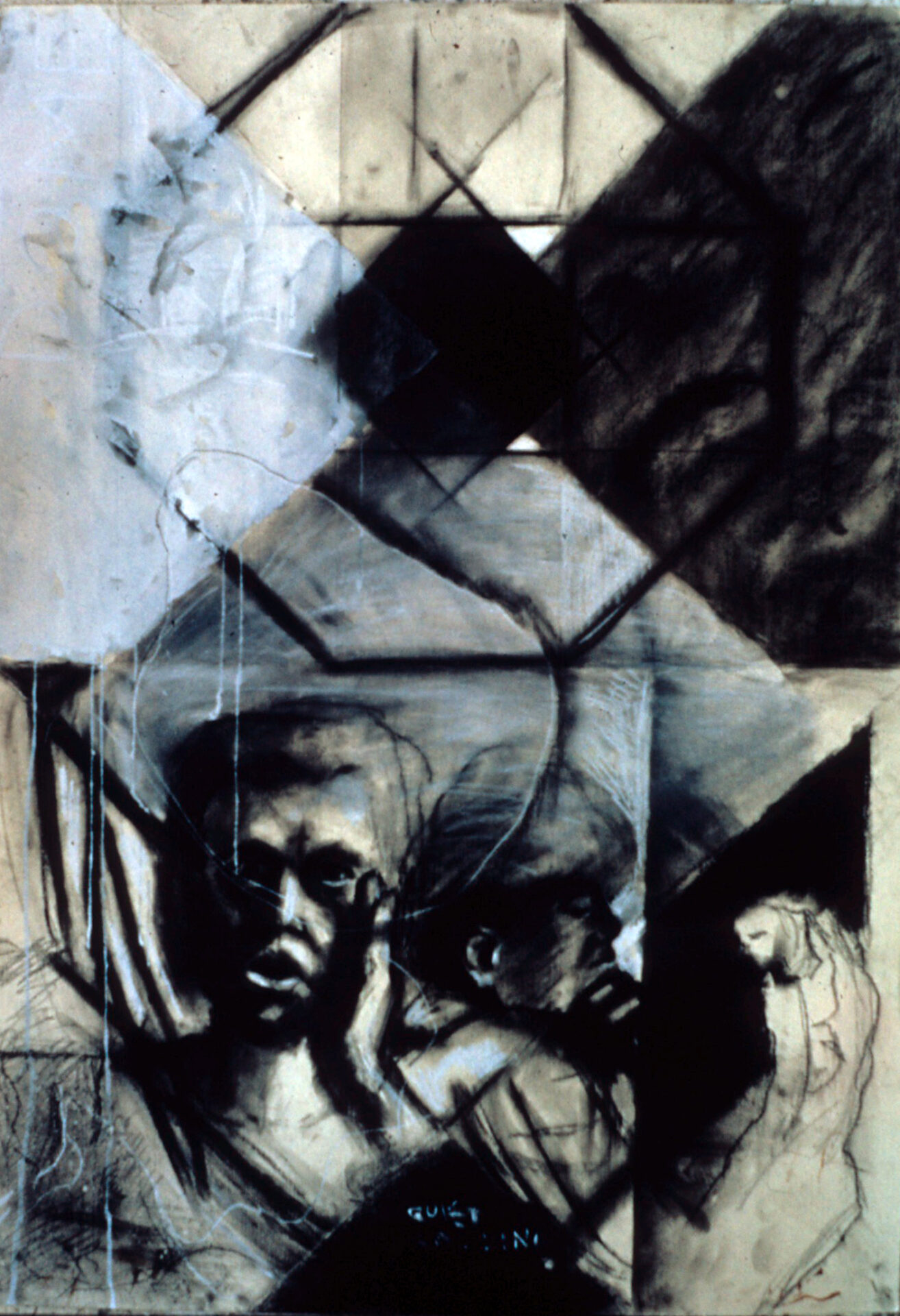 We are Listening charcoal, chalk, china white on paper 1986 100 x 70 cm