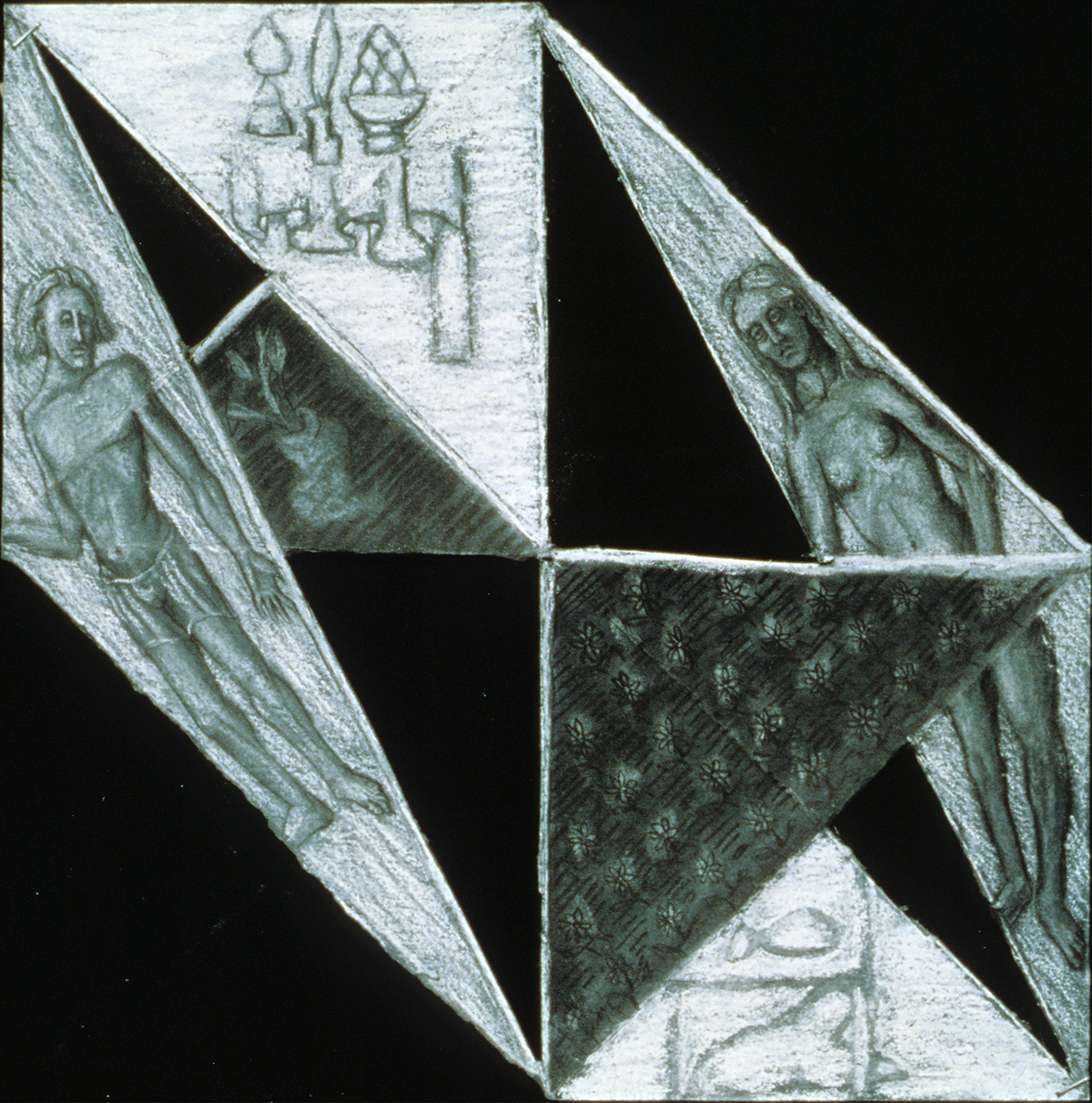 Half Plane Cube charcoal chalk on paper 1988 30 x 30 cm
